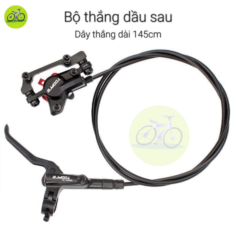 THẮNG DẦU XE ĐẠP PHANH ĐĨA THỦY LỰC TOOPRE CHINH HÃNG 2 PISTONS Thương hiệu: TOOPRE Xuất xứ: China. Trọng lượng tịnh: phía trước 325g, phía sau 343g, Cấu trúc tay thắng: phía sau bên trái, phía trước bên phải Vật liệu thân chính: hợp kim nhôm 6061 Kích thước hộp: 54 * 28 * 37cm (50PCS / hộp) Chiều dài của ống dẫn dầu: chiều dài của tấm dầu phía trước là 80cm, và chiều dài của tấm dầu phía sau là 145cm.